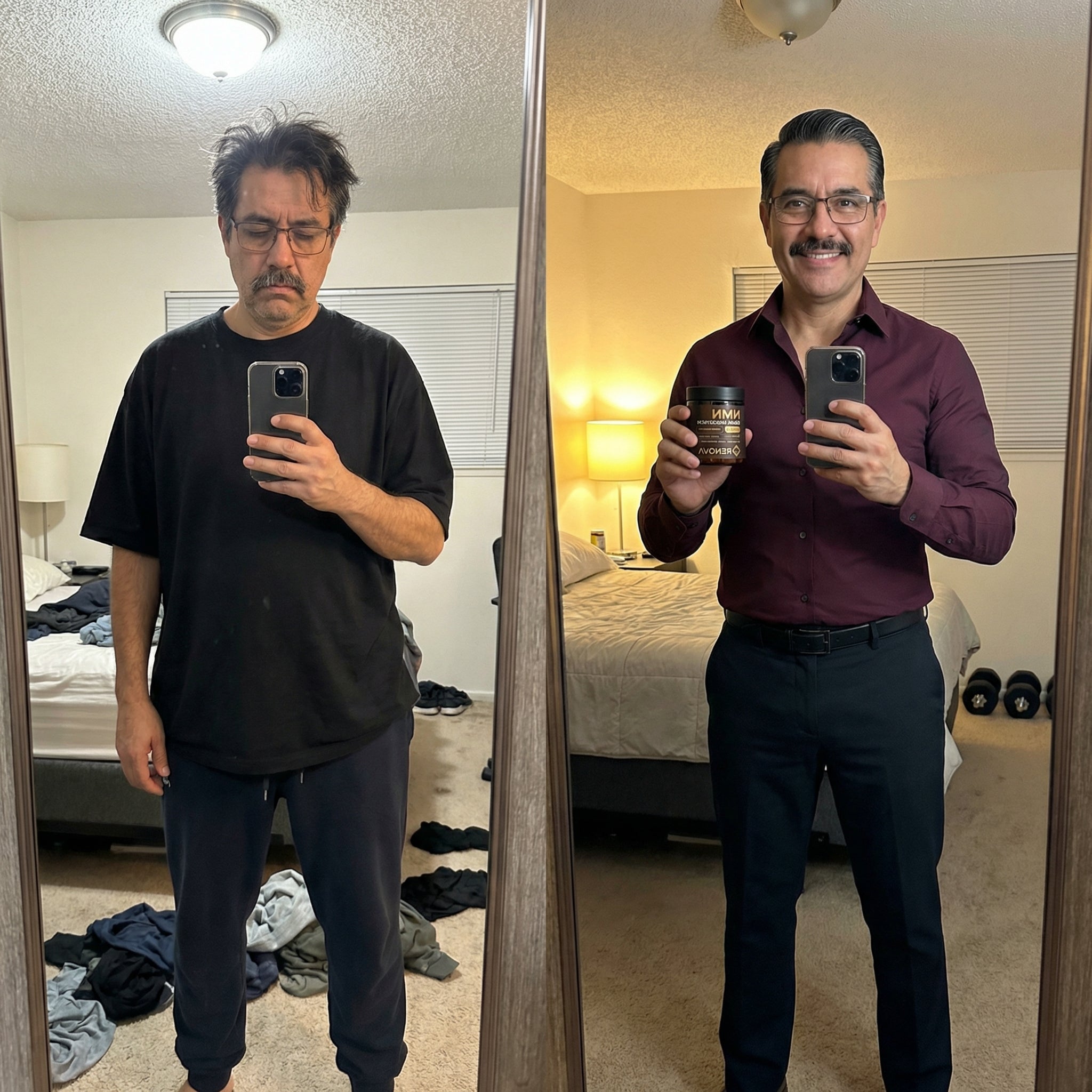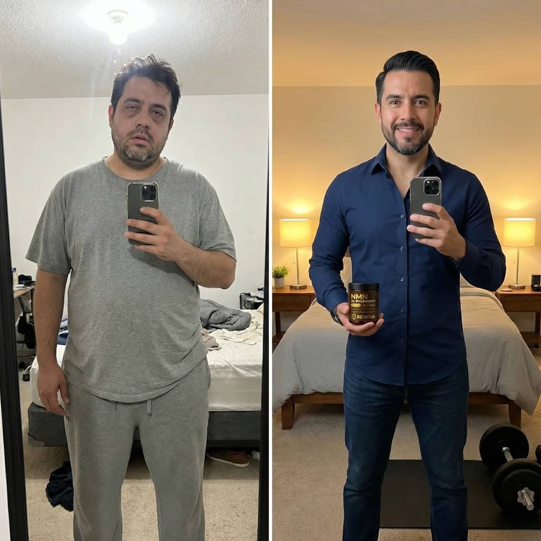 Mi hermano me dijo: 'Ricardo, esto NO es normal.' Me habló del NMN y aunque pensé 'otro suplemento que no va a funcionar', estaba desesperado. La primera semana sentí un cambio BRUTAL. Ya no necesitaba 3 cafés. A las 2 semanas, mi esposa me dijo: 'te ves diferente.'