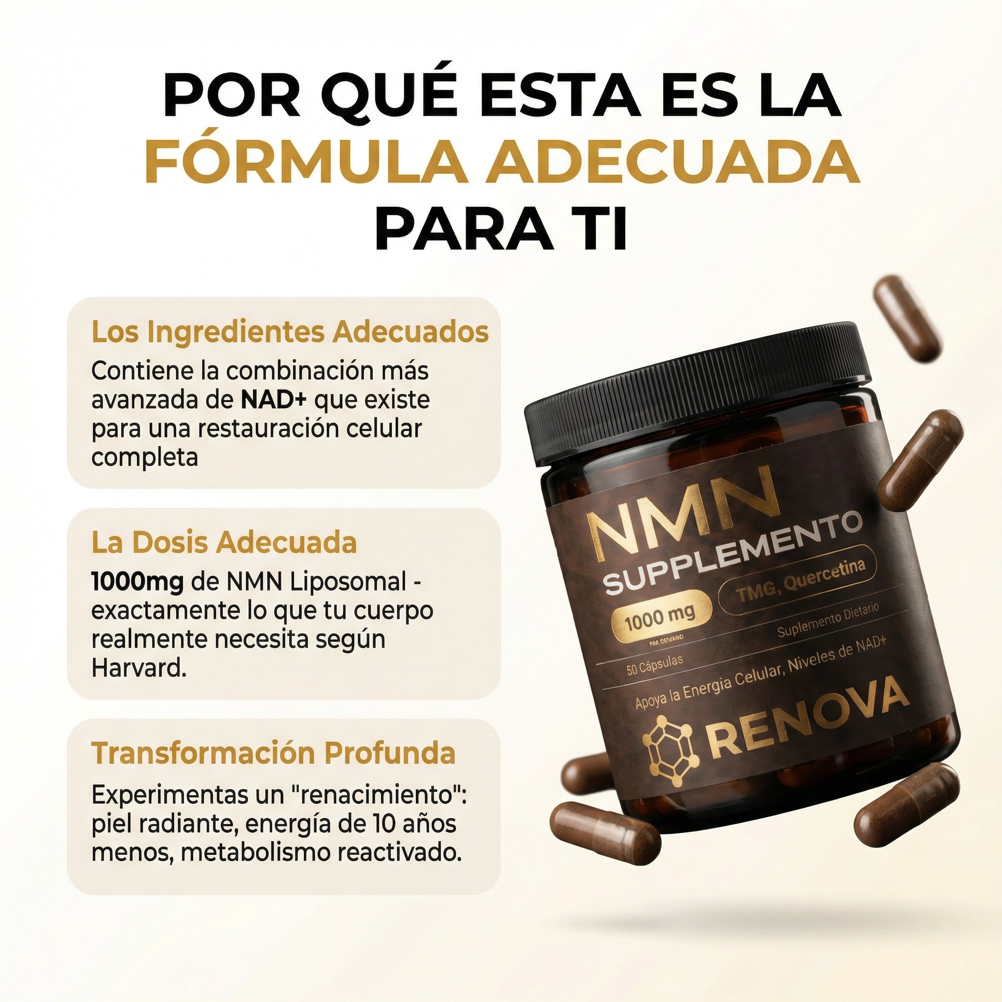 ✨ Validación Harvard: Basado en 300+ estudios sobre restauración NAD+ y reversión del envejecimiento celular.